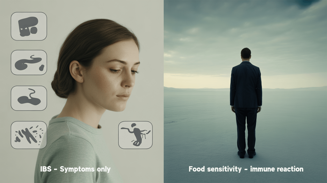 IBS is defined by symptoms, not by cause. It describes a pattern of abdominal pain associated with changes in bowel habits, without structural disease. Food sensitivities, on the other hand, are driven by immune activation.